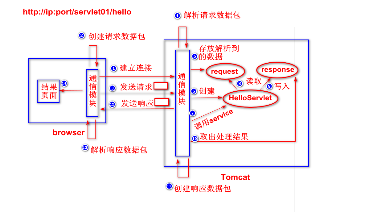 当我们打开浏览器,在地址栏填写 http://ip:port/servlet01/hello